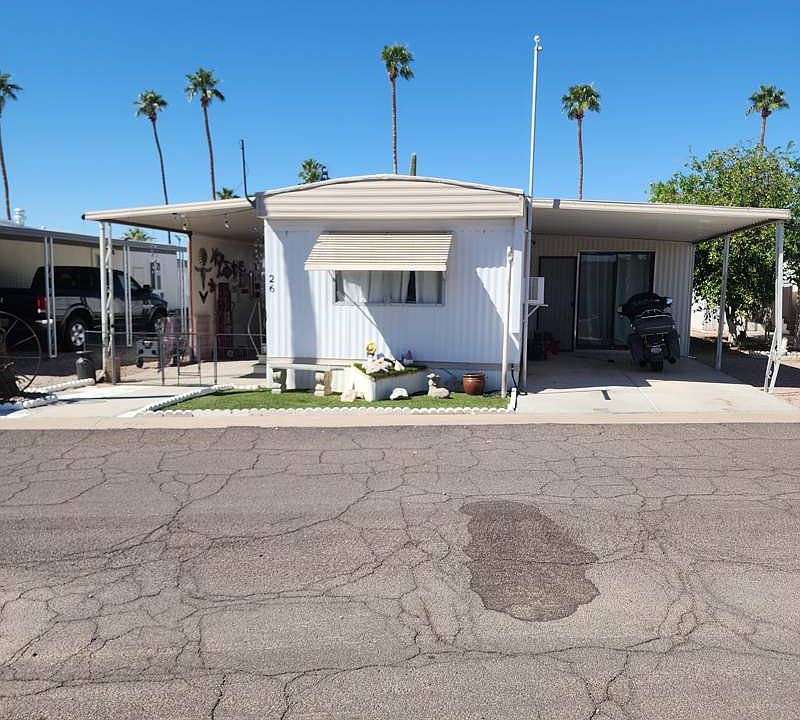 Welcome to this charming 528 square foot manufactured home in Superstition Shadows community. This cozy home features 1 bedroom and 1 bathroom, making it perfect for a small family or a couple looking to downsize. Built in 1973, this home has a quaint and vintage charm that is sure to appeal to those looking for a unique living space. The open floor plan allows for easy flow between the living room, dining area, and kitchen, creating a comfortable and inviting atmosphere. The home also features a small patio area, perfect for enjoying the beautiful Arizona weather.Located in Apache Junction, AZ, Superstition Shadows is a welcoming and active community for residents 55 and older. This community offers a variety of amenities including a clubhouse, pool, and social events for residents to enjoy. The community is conveniently located near shopping, dining, and recreational activities, making it easy for residents to take advantage of all that Apache Junction has to offer. With its friendly atmosphere and convenient location, Superstition Shadows is the perfect place to call home for those looking for a relaxed and enjoyable living experience.