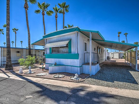 Cute and Cozy 2 bedroom 1 bathroom is waiting for you, all you must do is bring your tooth brush! The AC works like a charm. The hot water heater is newer! There are two sheds one wired with electric perfect for a workshop. This well taken care of home is located in a quiet community with a great view of the Superstition Mountains. That features a pool, club house, laundry room and lots of fun events!