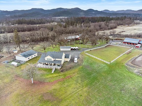 Horse breeders and trainers take note! This top-notch equestrian center can be yours! Located on over 41 acres in southern Oregon, you will find an immaculate array of what you need to run your business including several barns with these features and more: 44 stalls, an office, tack rooms, a 60 x 120 covered indoor Arena, matted wash racks, piranha fly spray systems, an outdoor arena, grain room, 4 horse floating fenced exerciser, round pens, a one mile groomed trail, and parking for multiple horse trailers. All this with a custom 2017 built home with over 3500 sf, covered decks with panoramic views of Mt. McLoughlin and Table Rock, and there's more! RV pad with full hook-ups, a 40 x 50 shop (once an airplane hanger), and additional detached 3 car garage with work area. After a full work day with the horses, relax on the porch with a cold beverage and watch the elk herd grazing in the pasture, with snow capped mountains in the distance.