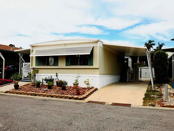 This is it! **You will enjoy living in this 2 bedroom, 2 bath mobile home located in the desirable Stardust Mobile Home Park featuring large living room, dining area with built-ins, kitchen with breakfast bar and laundry area plus low, low Space Rent! **Spacious front covered patio for relaxation and enjoy the Ventura breezes plus a yard, shed and 2-car covered carport. The community has wonderful amenities including a pool, spa, gym, laundry room and clubhouse. Minutes from the coast, parks, schools, public transportation and easy freeway access. Don't miss this opportunity to live the Ventura Dream!