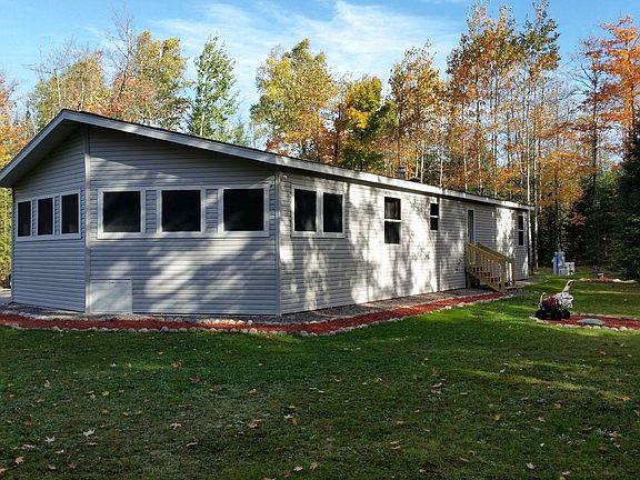 Updated 2006 Wick Manufactured home on concrete slab, insulated crawl space with commercial crawl space dehumidifier. 2 bed, 2 bath with bonus room and large enclosed porch all on 1.38 acres. 28x28 2 car insulated and heated garage with a floor drain. Many updates: new siding, new appliances, new paint, new flooring/carpet throughout, new toilets, new ceiling fans, new storm doors, and much much more. Frontier phone and internet. Generac 14KW whole house backup generator. Close to many lakes and trails. Located 12 miles east of downtown Eagle River. Surrounded by national forest - no neighbors