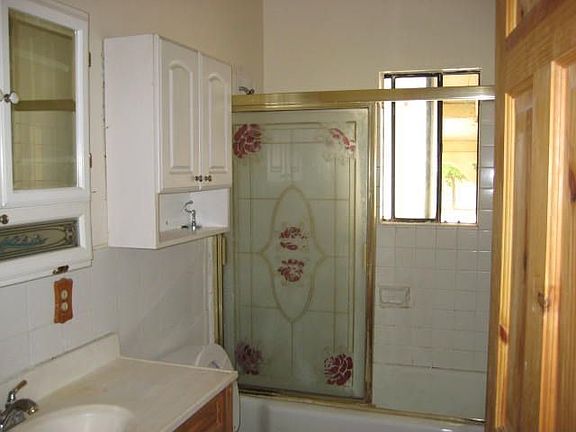 3 bedrooms, 1.5 bath home with wood floors in the living room, a covered patio in the backyard, a detached 2 car garage, and a seperate recreational room. Long driveway offers possible RV access and parking. Tile walls in bathroom and kitchen.