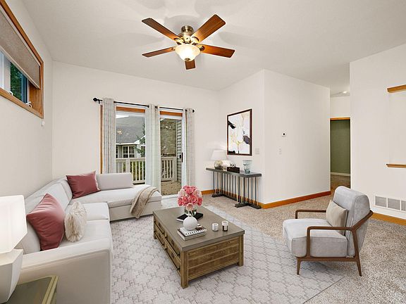 ** MOVE-IN READY!! ** FAST POSSESSION POSSIBLE!! ** Freshly Painted throughout! ** NEW FLOORING! ** GREAT PRICE!! ** One level Living End unit with private views! ** OPEN FLOOR PLAN with 9'-0" High knock down Ceilings ** Newer High Efficiency Furnace ** Kitchen has Stainless Steel Appliances, tile backsplash, breakfast bar and pantry closet ** Kitchen opens up to Dining and Living room with 3-sided gas fireplace with marble surround ** Nice Sunroom with ceiling fan that steps out to your deck! ** Main Floor Laundry with extra cabinets for storage ** Primary/Owners Suite has separate soaker tub and shower, double vanity, tile floors, walk-in closet and ceiling fan ** Solid Core 6 Panel Doors throughout ** Additional Bedroom on Main and additional Full Bath on main with tile floors ** Finished Lookout Lower Level has mother-in-law apartment, 3rd bedroom with walk-in closet, HUGE Family Room, 3/4 bathroom, large storage room and workroom ** Extra Insulation Added in Attic ** Garage has 8'-0" high doors and is 23' deep by 20' wide ** Private views with walking trails close to park and Crow River! ** Close to great Restaurants: River Inn, Big Boar BBQ, and NEW Hilltop Bar & Grill ** Conveniently located close to Parks, Trails, Downtown St. Michael, more restaurants, shopping and a future Costco in Albertville! **