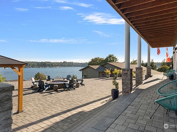 Boundless & captivating views of Lake Stevens, the Olympic mountains & breathtaking sunsets. From morning tranquility of a quiet glass like lake, to busheling joy & laughter of boaters & paddle boarders, from bald eagles soaring at eye level to fireworks lighting up the sky like a private display. Enjoy the many impressive features like the wine rm, panic rm, plenty of elevated guest parking, AC, massive walls of view windows, new cabinetry and quartzite 6'X10' island top. A top-of-the-line chefs 6 burner gas range. a resort style owners suite w/a lake view jetted tub, massive closet, whole home surround sound, long elevated deck, $100K patio, gazebo, greenhouse, 2 car garage w/electric charging & storage, the tour is even better in person.