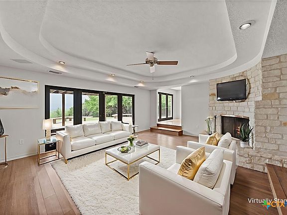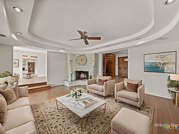 Step inside to discover a layout built for living and gathering, featuring four bedrooms, two full baths, two separate half baths, a home office, two dining rooms, and two spacious living areas on the main floor—each centered around its own fireplace. A striking spiral staircase leads to an oversized loft upstairs, complete with built-in bookcases, a bar area, and access to the upper deck.