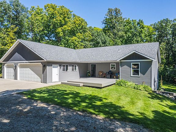Welcome to this stunning 2017-built home, perfectly situated on a private, 1+ acre wooded lot. Offering 5 spacious bedrooms and 3 full bathrooms, this property blends modern comfort with peaceful surroundings while being less than 6 miles from Detroit Lakes. The inviting main floor features an open layout with 3 bedrooms conveniently located on one level, including a luxurious primary suite with a soaker tub. The functional mudroom with custom built-ins makes everyday living a breeze. The basement is ready for your finishing touches, with a layout that includes an additional 2 bedrooms, full bathroom, laundry area & storage. For added convenience, there are also laundry hookups on the main level Enjoy multiple outdoor living spaces including a large front porch, a deck off the dining room, and a recently added covered back porch overlooking the serene newly landscaped and fully fenced backyard—complete with a storage shed. The oversized 3-stall garage provides plenty of space for vehicles and storage. Mature trees surround the property, offering shade, privacy, and natural beauty. Your own backyard oasis. Schedule your showing today!