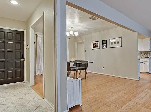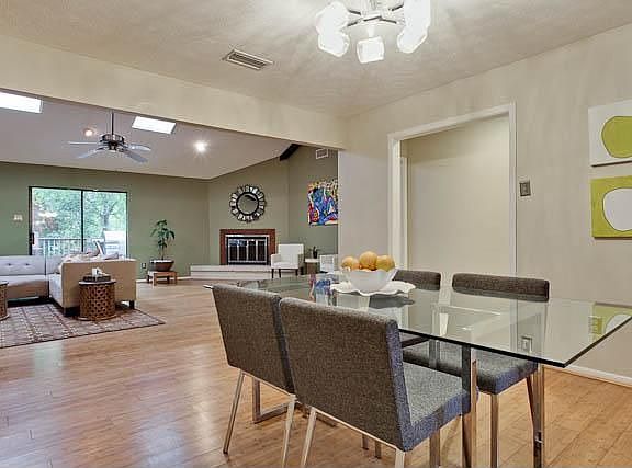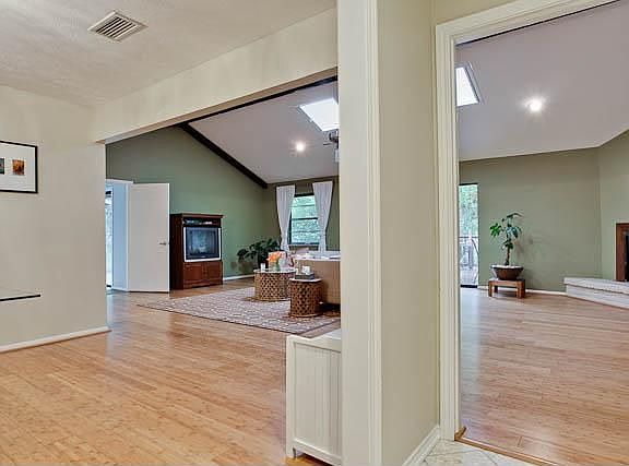 Handsomely updated Lakeland Hills 3 bed, 2 bath home has an exceptional open floor-plan This one story with open living spaces is perfect for entertaining. Updated lighting, paint, kitchen and baths. Roomy second living area could also be a great office, also a bright atrium-sunroom & large backyard with wood deck & small pond. Large creek lot with many trees for privacy. Private parking available from side drive.