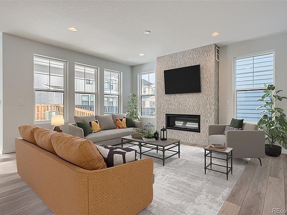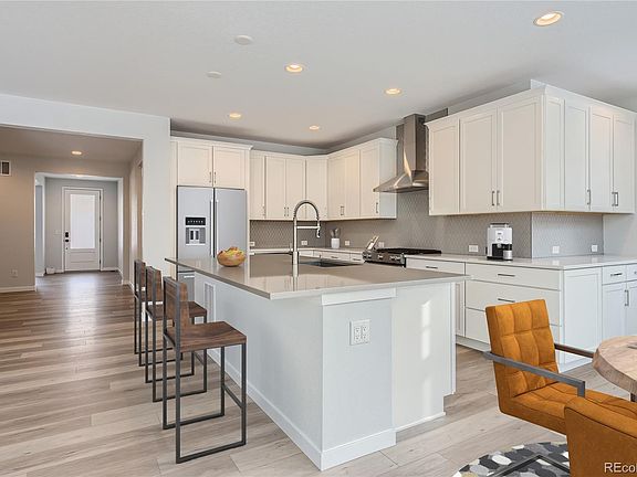 Beautiful two-story, 3 bedroom, 2.5 bath home with loft, fireplace, covered patio and 3-bay tandem garage located in the desirable Solstice Community by Shea Homes. Solstice is surrounded by Chatfield State Park on 3 sides of the community and acreage parcels on the 4th side.  Design finishes include luxury plank Evoke Astoria Collection Tiercel wood-style flooring and stairs, tile floors at the bath and laundry rooms, MSI New Carrara Marmi quartz perimeter kitchen counters with backsplash, MSI Concerto quartz kitchen island counters, 12x24 Glenrock More Design Perla full height tile fireplace surround, Yorktowne Henning Frappe bath 2 and laundry cabinets, and Yorktowne Henning White Icing remaining home cabinets. This home includes backyard landscaping, washer, dryer and refrigerator. The Mirabelle Metropolitan Districts provide various services to the property and in addition to the estimated taxes, a $40 per month operations fee is imposed.