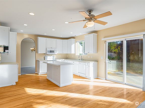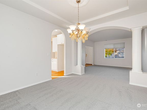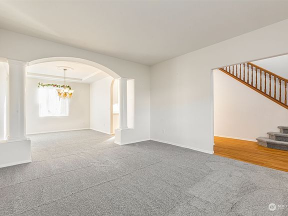 A Must see Home in Graham! Amazing floor plan, great for entertaining. Light and bright entry way, main level bedroom near full bath and easy access to garage, great for guests and extended family. Architectural detail in the living room, dining room and ceilings. New carpet, large kitchen with eating area, updated kitchen cabinets and open bonus room w/built in's and surround sound and office. Upstairs features 4 spacious bedrooms , full bath, extra large primary with full bath suite and walk-in closet. Extras include-hardwood floors, fenced backyard, covered porch, AC, mature landscaping and 2 car garage, w/ample space for parking and RV. Located in the award-winning Bethel School District. Come and make this your new home!