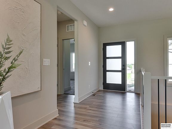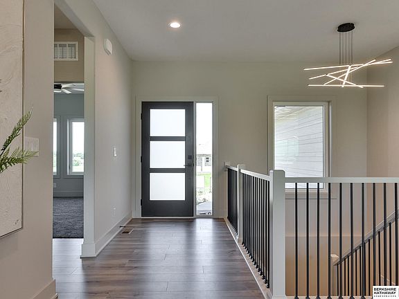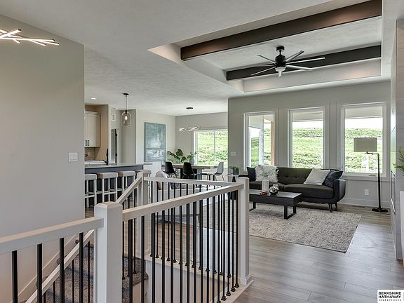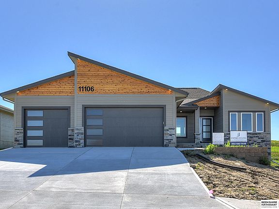 Complete!! 1-0 RATE buy down w/ preferred lender! Stunning East facing Modern Paxton XL Ranch home in Kempten Creek, adjacent to the new 50-acre Neumeyer Farm PARK and athletic complex in Bennington. Future home of NRD DAM/LAKE! This luxurious 5-bed, 3-bath ranch features high ceilings and abundant natural light. The open kitchen boasts a gas range, high-end SS appliances, custom shaker cabinets, quartz countertops, and a walk-in pantry. The living room's cozy fireplace is perfect for relaxation. The primary suite offers tray ceilings, dual vanities, a walk-in shower with rain head and handheld system, and a huge closet connected to the laundry room. The spacious lower level includes 2 bedrooms, a 3/4 bath, & a wet bar with quartz countertops. Enjoy mornings and evenings on the covered patio overlooking flat backyard. This home features a high-efficiency furnace, water heater, enhanced insulation, and a nearly 1/4-acre flat yard.