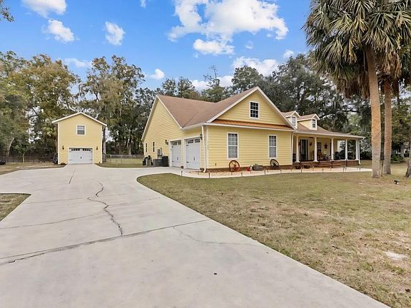 4BR/3BA CUSTOM HOME ON 1 ACRE | BUCK BAY SUBDIVISION Welcome to this spacious, beautifully appointed custom-built home nestled on a 1-acre lot in Buck Bay Subdivision—one of Chiefland's most desirable and family-friendly communities known for its peaceful setting and stunning custom homes. From the moment you arrive, you'll admire the expansive covered front porch, perfect for relaxing, along with the well-maintained landscaping that enhances the home's curb appeal. Step inside to a bright, open-concept floor plan highlighted by tray ceilings, rich mahogany wood floors, elegant crown molding, and detailed craftsmanship throughout. The gourmet kitchen is a true chef's dream, offering beautiful wood cabinetry, granite countertops, and an impressive oversized center island ideal for meal prep, casual dining, or entertaining. A large formal dining room provides an inviting space for gatherings and special occasions. The main level features a split floor plan with three spacious bedrooms and two full bathrooms. The luxurious primary suite serves as a serene retreat with generous walk-in closet, dual vanities, a deep jetted soaking tub, and a separate walk-in shower. Both HVAC units are just over one year old, and the home includes a new top-of-the-line Samsung refrigerator plus a new Whirlpool washer and dryer. Upstairs, a private bonus room with its own full bathroom and large walk-in closet offers endless possibilities—perfect for a guest suite, home office, media room, playroom, or hobby space. Outdoor living is a highlight, featuring a spacious back porch warmed by a charming two-sided gas fireplace that also enhances the living room inside. The fenced backyard provides ample room for kids, pets, gardening, or future expansion, and includes a 5–6 person hot tub for ultimate relaxation. Additional improvements include a 2-car attached garage, a detached garage with an upstairs A/C-equipped bonus room—ideal for a workshop or studio—and a 1616 pole barn plus a stand-alone storage shed. A whole-house generator hookup adds peace of mind year-round. This exceptional property has been thoughtfully designed—you truly must see it in person to appreciate all it has to offer. Some furnishings may convey. Seller concessions may also be available—contact us for details. Call today to schedule your private tour!
