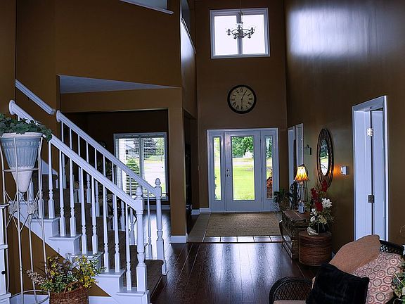 Country living in town! Custom built home set on 2.5 acres close to town and shopping. Open floor plan with approximately 4000 s.f. of finished living space. This spacious house is in Zeeland school district and includes a finished/heated out building that is 32'x44' with 12' ceilings. Main floor includes formal dining and living room spaces with vaulted ceilings. A main gathering area includes a breakfast nook and open kitchen/family room. In addition to the main floor master suite is the laundry and private office. Upstairs, there are 2 bedrooms with a full bath and sitting room. The walk out basement has another bedroom and full bath with a large rec room, fireplace and kitchenette. 9’ ceilings add to the open feel. Gas heat, central air and gas water heater were all replaced in 2017.