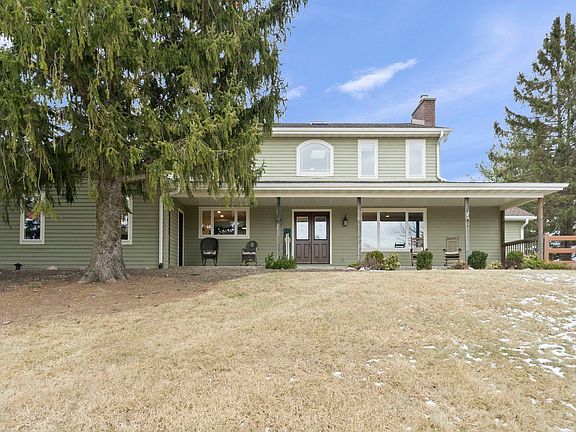 Take in the gorgeous views as you venture up the winding drive towards this immaculate professionally remodeled home on a gorgeous 10 acre property. The entire home was professionally remodeled within the last ten years. Some of the key updates include: Hickory wood floors throughout the main level, huge open kitchen with granite countertops and brand new refrigerator (December 2024), large country style sink, large custom island, gourmet Bertazzoni range and hood, all new windows, new composite siding, new roof, new HVAC (dual zoned), vaulted ceilings in the master bedroom and adjoining sitting area (1st floor master), completely new master bathroom with a large walk-in closet, oversized doors throughout the 1st floor with custom wood framing and crown moldings, new custom trim throughout, very large brick paver back patio with sitting wall, updated plumbing, new stone fireplace, new concrete parking and RV pads (2023), new brick paver walkway (December 2024). Master bedroom has a 4-season sitting room / office off the side facing the back of the property and rear door to a private deck. On the backside of the home another full bathroom is located near the back entrance with a large walk-in shower (easy to get cleaned up after coming in - back three acres were previously used for horse riding area). Upstairs find two more bedrooms and a loft / office area and an additional updated full bathroom. Barn is approximately 26x33 and currently used as a workshop and storage for off-road vehicle and tools. Basement is unfinished. Front of the home features a large covered front porch with tons of room for sitting and enjoying the views. Approximately 330 feet of frontage and the lot goes back approximately 1300 feet.