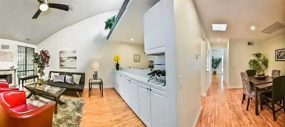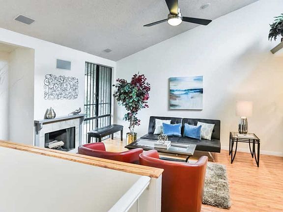 Located just a few exits away from Downtown Burbank off the 5 Fwy and 10 minutes from NoHo art district, this bright and cozy townhouse offers incredible value in LA. As you enter, walk up to your sun drenched living room, complete with a high vaulted ceiling and a fireplace. The water and scratch resistant engineered wood flooring adorns the home from wall to wall creating warmth and comfort. The Kitchen opens up to the living room with plenty of counter space for use during entertaining. Skylights add stylish accents to the kitchen & dining area. Two Master Bedrooms located on separate floors come with ensuite baths. The private patio surrounded by lush greenery provides ample space for entertainment and enjoyment. Abundance of storage throughout the home and in the garage. Washer/Dryer area in unit. Central A/C. Attached 2 Car Garage and extra guest parking. HOA of $395. Gated complex with only 20 units. Per seller, new updates include; water heater, kitchen sink, toilets, light fixtures. Walking distance to local restaurants, shopping, the Sun Valley Library, Recreation Center/Park, the bus line & 5 freeway.