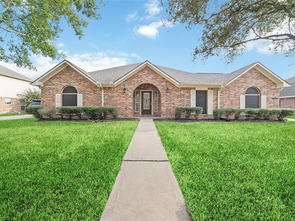 Welcome to this charming one-story brick ranch in quiet Pearland neighborhood. Features full brick exterior, energy-efficient windows, and mature landscaping. Spacious open layout with great natural light and two-car garage. Classic curb appeal and well-maintained inside and out. Home has high ceilings with lot of windows to allow natural lights. The primary ensuite bath features jetted tub, double vanity. Located near major highway and shopping center. New Water Heater 1/2024. New AC Condenser 7/2025.