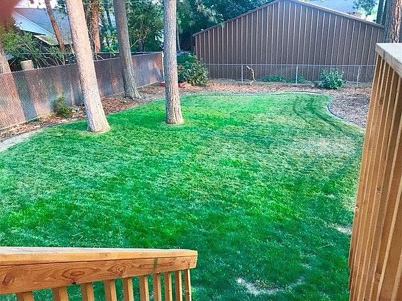 Maintenance free living in a park-like setting! Beautiful and spacious 1650 square-foot three bedroom, two bathroom duplex. Located in a quiet residential neighborhood with wide streets, large lots and established landscaping. New deck and landscaping with a fenced backyard, storage shed and shade trees. Upstairs there are two bedrooms, one bathroom, living room with wood-burning fireplace, dining room and kitchen. There is a bonus room/office off the dining room that leads to the new backyard deck. Downstairs there is a large family room with a second fireplace, one bedroom, bathroom and laundry hook up. There is air-conditioning and all maintenance/yard care is included.