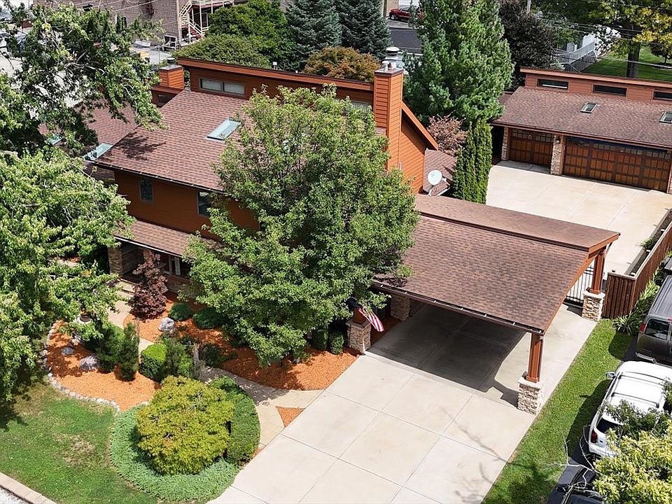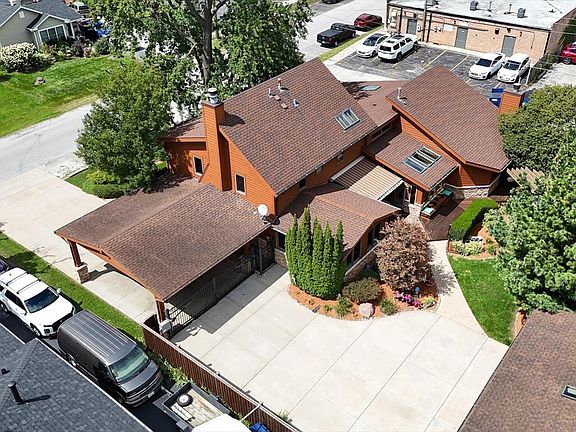 Welcome to this impressive 2-story home offering over 3,000 sq ft of living space on a beautifully landscaped double lot with mature trees and custom curb appeal. Featuring 4 bedrooms, 3 full baths, and 4 fireplaces, this home blends character, comfort, and modern updates. The detached 3-car heated garage (built in 2012) is a true standout, with epoxy heated floors, an oversized 18' wide x 8' tall cedar door, running water, its own 100-amp service, loft storage with drop-down stairs, and side stamped concrete patio-ideal as a mechanic's dream workshop, man cave, or hobby retreat. Inside, enjoy hardwood floors, custom oak trim, solid 6-panel doors, Andersen windows, and thoughtful details throughout. The kitchen offers stainless steel appliances, pantry closet, oak cabinetry with herb sill, peninsula seating, and hardwood floors. It opens to a vaulted dining room and bright sunroom with cathedral ceilings, skylights, and a ceiling fan. The adjoining living room features a gas fireplace and hardwood floors. A family room with heated tile floors, stone-decor gas fireplace, surround-sound wiring, crawlspace access, and exterior door provides additional versatility. The primary suite on the main level showcases vaulted ceilings with skylights, wood beam detail, crown-molding lighting, stone-decor gas fireplace, large walk-in closet, and private full bath. The second floor includes 3 bedrooms, a walk-in laundry room with attic access, and a spacious full bath with jacuzzi tub, separate shower, vaulted ceiling, and skylights. Entertainment options abound with a custom game room and bar featuring neon lighting, built-in bar, fireplace with lighted mantle, vaulted ceilings, and included 1950's diner booth, vintage phone booth, and TVs. A loft overlooks the game room with an additional built-in booth and storage. The exterior is equally impressive, with Hardi Cement siding freshly painted, a new roof (2021), 2 Ring doorbells, sprinkler system, shed, and fenced yard with oversized posts along the alleyway. Outdoor living spaces include a huge Brazilian hardwood (IPe) deck with pergola, stamped concrete patio, hot tub with electric awning, and a complete outdoor kitchen-all surrounded by lush landscaping, including a full-sized Japanese Maple. Additional highlights: 3 furnaces & A/C units, whole-house humidifier, intercom system, central vacuum, vaulted covered breezeway, and freshly updated insulation. The whole house fan is being conveyed AS-IS (non-functional). Lovingly maintained and owned by a contractor, this home showcases craftsmanship and attention to detail rarely found today. Every feature has been thoughtfully designed and carefully executed, with updates and improvements completed to the highest standards. It's truly better than brand new-benefiting from the strength and character of its original build while offering modern upgrades, premium finishes, and quality that reflects the pride of ownership throughout. This unique property delivers exceptional craftsmanship, abundant amenities, and the perfect mix of indoor comfort and outdoor entertaining-making it a one-of-a-kind place to call home.