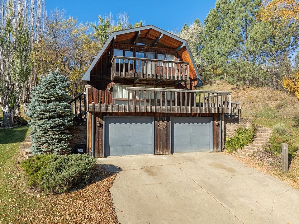 One-of-a-kind home near Bel Air Elementary! Tucked away on a quiet street and surrounded by mature trees, this unique custom-built cedar-sided home offers warmth, character, and space to spread out. Sitting on a generous 1/3-acre lot, you'll love the inviting curb appeal and multiple outdoor living spaces, from the large multi-level decks on the front (perfect for morning coffee with a view) to the private wooden patio tucked behind the home. Inside, the galley kitchen features a convenient snack bar and opens into a spacious dining and living area, great for everyday living or entertaining. The main floor also offers a cozy family room, laundry area, and 3/4 bath for added convenience. Upstairs, the king-sized primary bedroom is a retreat, complete with large windows that let in tons of natural light and access to the upper deck. Two additional bedrooms and a full bath complete the upper level. The finished walkout basement adds even more versatility with a half bath, office/den area, and plenty of potential. An attached finished double garage with plenty of storage rounds out this one-of-a-kind home. If you've been searching for something with character, space, and personality, this is it!