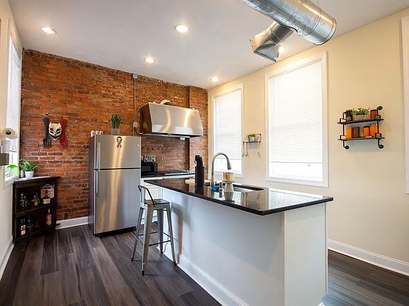 Set within a well-maintained mixed-use building totaling over 6,220 square feet, this residence combines modern comforts with classic character. The kitchen is equipped with white shaker-style cabinets, granite countertops, a stainless steel range with oven, and a built-in dishwasher, offering a clean, contemporary layout ideal for cooking and entertaining. The exposed brick and industrial ductwork add a distinctive touch of character and style that's sure to catch the eye.