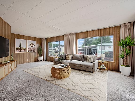 Adorable 2 bedrm in vibrant 55+ community boasts 1,536 SF of living space w/expansive living rm, vaulted ceilings, new carpet and lg windows. Eat-in kitchen w/bar seating, tile backsplash + all appliances incl. Primary Ste is a haven of tranquility, boasting a large closet + attached room that can be used as a luxurious closet/office/seating and a full bath w/soaking tub & shower. Guest bedrm w/built in storage can be an office/hobby rm. Full bathrm w/shower-tub combo just steps away. Gorgeous deck off of dining rm + tree-lined, private backyard beckons you to unwind and enjoy moments of serenity. Carport, shed, covered work area, util rm w/W&D. NEW Clubhouse w/tons of amenities coming soon! Buyer min income $2800/mo.