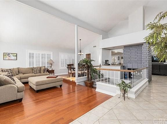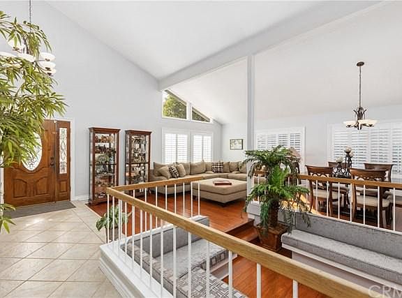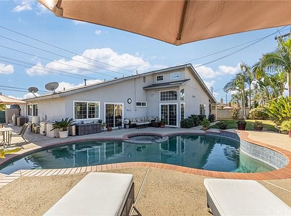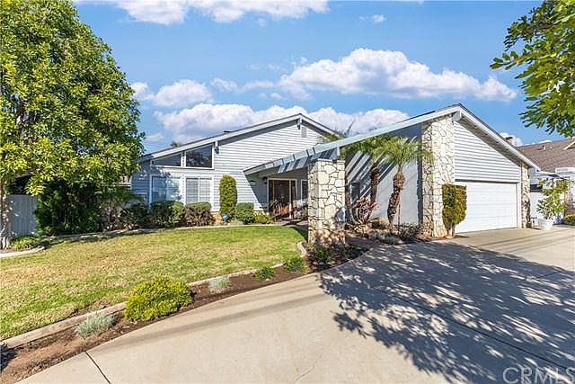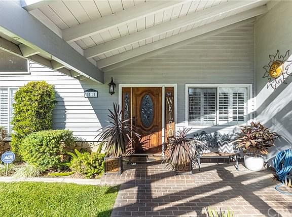 UPDATED SINGLE STORY POOL HOME W/RV PARKING & PAID SOLAR PANELS. Situated on a sprawling lot w/circular driveway, landscaped yard w/grass & mature trees, covered front porch w/brick decking leading to a newer front entry door. Tiled entryway w/soaring vaulted ceilings overlooks a formal living room w/adjacent dining room & a sunken sitting area in front of a two-sided floor-to-ceiling fireplace. Bright windows w/plantation shutters, bamboo wood floors & an open concept floor plan. Kitchen w/wood cabinetry, granite countertops & backsplash, stainless steel appliances, recessed lighting, breakfast bar & a separate bar area w/wine fridge & counter space. Spacious family room offers tiled floors, vaulted ceilings w/two ceiling fans, breakfast nook & a slider to the backyard. Master bedroom offers vaulted ceiling, slider to backyard w/view of pool & mountains. Master bath w/newer vanity w/tiled countertop, soaking tub, separate walk-in shower, standard closet & a walk-in closet. Three additional bedrooms w/ceiling fans & spacious closets. Remodeled hall bathroom w/maple cabinetry, tiled counters & a large custom shower w/glass door. Attached two car garage. Backyard offers a saltwater pool & spa w/pebble finish, concrete decking, grass lawn & perimeter planters. Alumawood covered side yard w/ceiling fan, concrete decking, tall privacy hedge & opens to grass area. Block walls on all three sides plus a second side yard w/room for gated RV parking. Dual paned windows, dual A/C units.