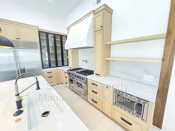 Solomon Property Management & Sales is honored to offer this 4 bedroom 2 bath single story 2100 Sq Ft house on a private Court in Vista! This home is available now! The kitchen boasts a HUGE island with solid stone countertops, oak cabinets, and a stainless steel appliance suite which includes a Subzero Refrigerator, Viking 6 Burner Gas Range with pot filler above, Microwave, and Dishwasher. All of the bathrooms are completely updated with modern amenities such as walk in showers, and a large soaking tub. The primary bedroom has a huge walk in closet with fully custom shelving. There is a washer and dryer hookups in the home, it is setup for a full size stackable washer and dryer (gas dryer) This home also includes an attached 3-car garage! Solar is included and will help offset electricity costs. No expense spared on the interior remodel! This home does have central AC.