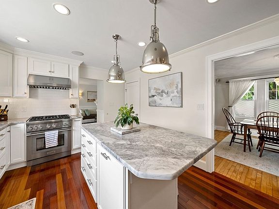 Surround soundNew hardwarePrivate backyardRenovated bathCenter islandWhite cabinetryUpgraded appliances