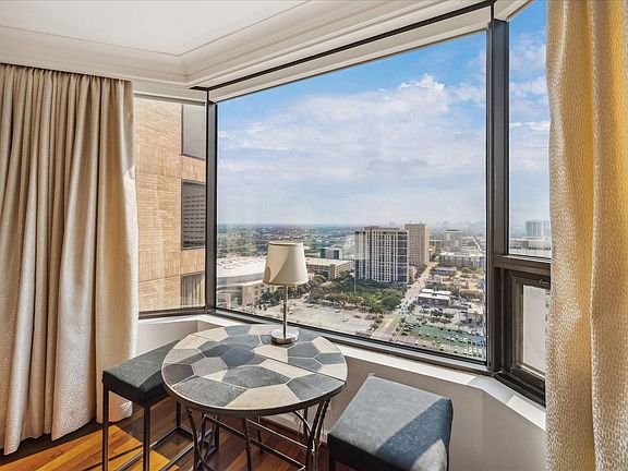 Perched on the 29th floor of the Four Seasons Private Residences, this furnished 1-bedroom, 1-bath condo offers 815 sq. ft. with sweeping downtown views and stunning sunset vistas. The galley kitchen features granite counters, refrigerator, dishwasher, wall microwave, and washer/dryer connections, with a common laundry room and private storage conveniently located next door to the condo. The bright living area and dining nook frame skyline views, while the bedroom retreat offers natural light and an adjacent stone-and-glass bath. Two televisions and hardwired internet via Comcast are fully installed, including at the built-in desk. Owners enjoy 24-hour concierge, valet, fitness center, pool, spa, in-residence dining, housekeeping, and engineering support. Exclusive benefits include access to International Four Seasons destinations, special events, and discounted dining, spa, and hotel rates. Steps to Phoenicia, Toyota Center, Minute Maid Park, Shell Energy Stadium, and Discovery Green.