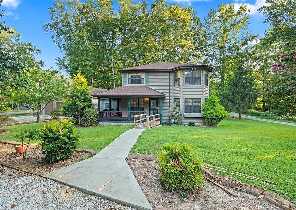 Nice home in desirable Star Point Village, just 1 mile from Star Point Marina on Dale Hollow Lake! This 1,802 sq ft property offers 4 bedrooms and 2.5 baths (septic approved for 2 bedrooms). The main floor features an open living and dining room, kitchen area, laundry, den, and a bedroom with en suite bath. Upstairs offers three bedrooms, a full bath, and an additional bath with shower and toilet. Outdoor living includes a spacious covered porch, back deck, and a beautiful corner lot. Storage is abundant with a shed plus two detached garages—perfect for a boat, jet skis, golf cart, and vehicles. Enjoy lake living with room for all your toys! Golf cart to the marina, take out the boat and enjoy a day on the water!