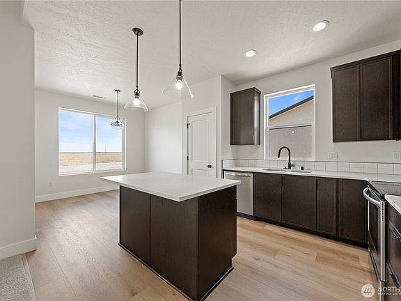 Stylish & Smart Living. This efficient 1,487 SF rambler combines thoughtful design with modern comfort. The open-concept kitchen flows seamlessly into a bright great room with soaring tall ceilings, creating an airy, spacious feel. The home features three bedrooms, with the primary suite thoughtfully placed on the opposite side of the home for added privacy. It includes a generous walk-in closet and a private bath. A covered front entry, dedicated laundry room, and a spacious 2 car garage adds convenience and function. Palos Verdes is offering a $10,000 incentive exclusively when you finance with their Preferred Lender.