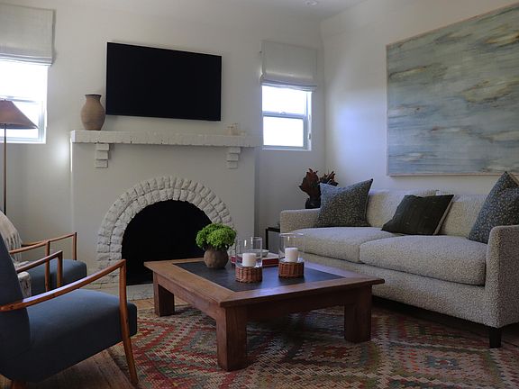 Inside, you'll find a well-designed layout featuring a cozy living room with fireplace, a sun-filled breakfast nook off the remodeled kitchen, and two comfortable bedrooms serviced by a gorgeous, fully updated bathroom. Every detail has been carefully curated from the furnishings to the finishes making this a truly turnkey living experience. The real showstopper is the entertainer's backyard, which has been completely reimagined as an outdoor oasis. The expansive patio functions as an open-air living room, complete with dining space, hot tub, gas fireplace, and raised planter beds for your herb garden dreams. It's the perfect setting for al fresco dinners and weekend gatherings.