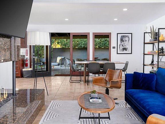 New Price Reduction, now offered Turnkey! Privacy and outdoor living take center stage from the moment you enter the lush hedges of this semi-remodeled 3 bdrm/2 bth Movie Colony East property. An oversized saltwater pool and in ground jacuzzi anchor one side of the spacious outdoor areas, while a covered patio with dining table and multiple seating areas anchors the other. The exterior leisure areas connect seamlessly with the open and spacious kitchen with generous countertops and storage, a dining area comfortably sized for six or more, and a cozy living room with gas fireplace.All three bedrooms have been fully reimagined including flooring, with a luminous primary bedroom and en suite bathroom, all in of-the-moment finishes, and two refreshed guest bedrooms. A fully remodeled second bathroom serves the guest bedrooms, and an office with direct car port access. Uniquely private and well located, this a house for those who prize entertaining.