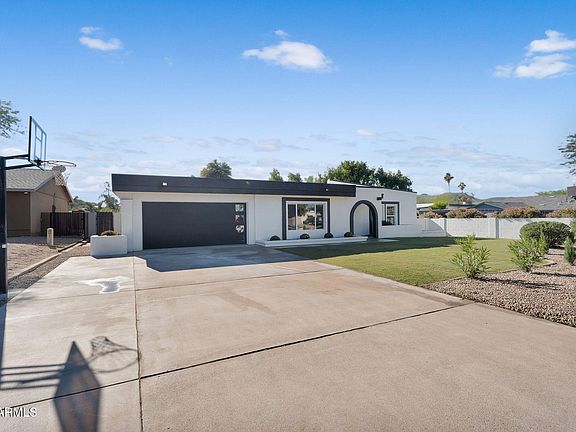 Welcome to this Phoenix home, offering the perfect blend of comfort and modern appeal. Brand new roof and pebble-tec pool. The exterior features expansive desert landscaping, a wide driveway, and a covered entryway. Inside, the open layout showcases a sleek black tile fireplace and an inviting kitchen with a large island, granite counters, stainless steel appliances, and plenty of cabinet space. The primary suite features backyard access, dual sinks, a tub and shower combo, and a walk-in closet. Sliding doors open to a relaxing backyard with a sparkling pool with a spa, extended patio, built-in BBQ, and a spacious grassy area. Close to shopping, dining, and more, this home is one you won't want to miss!
