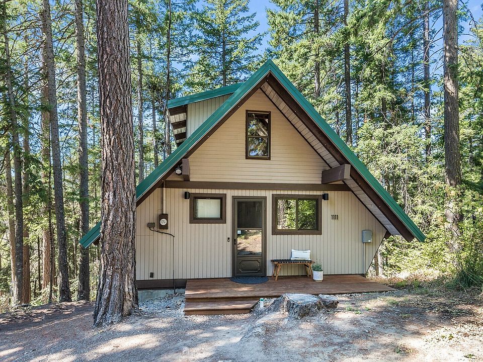 Newly renovated A-frame in Ronald w/ modern & retro vibes, vaulted ceilings & huge picture windows! Comes partially furnished w/ curated new furniture, new wall-to-wall carpet, updated kitchen & bath, open flr plan, wood-burning FP & $35K in upgrades. Enjoy the spacious deck perched high in the pines w/ Lake Cle Elum views + access to lodge amenities: outdoor pool, tennis, clubhouse & private beach in a respectful mountain community. Perfect VRBO or weekend getaway just 90 mins from Seattle! Successful short-term rental history. Close to Roslyn & Suncadia. Bring your snowmobiles & recreational toys for 4-season rec—relax in the mts or explore miles of trails & lake fun!