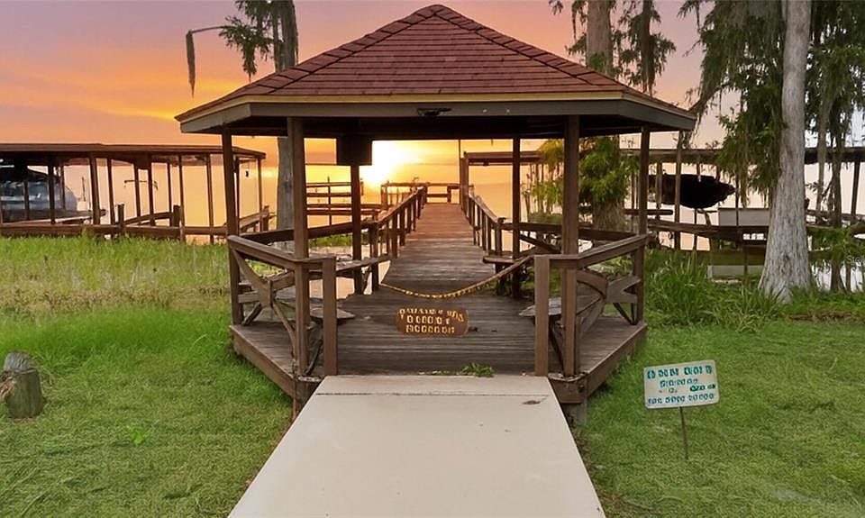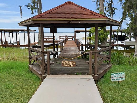 Lakeside Condo with Panoramic Views! Experience luxury with this stunning two story condo with breathtaking panoramic views of Lake Eustis that grace nearly every room. You have to see the amazing colorful sunsets from the Florida Room! This home has undergone several renovations within the past 5 years: Electrical, Plumbing, AC, Roof (2024), interior ceiling texture, Wood Floors, Kitchen cabinetry and appliances, as well as all 3 Bathrooms. As you enter through the large private courtyard, you’re welcomed by a grand foyer. The large Family Room is a true highlight, offering a tremendous, unobstructed view of the lake, a soaring stone wood burning fireplace, with convenient electric blinds and beautiful wood floors that extend throughout the entire home. The recently remodeled gourmet kitchen a show stopper complete with kitchenaid appliances, quartz countertops and not 1 but 2 closet pantries! The first floor offers a versatile bedroom with a walk-in closet and a full bath, providing flexibility for guests or a home office. Upstairs, you’ll find another large bedroom with two closets and a full bathroom. The laundry area is conveniently located on the second floor, with an additional setup available in the garage if you prefer downstairs. The primary suite is a true retreat, featuring a spacious walk-in closet, a makeup vanity, and a large shower with seamless glass enclosure. Top it off, the oversized attached two car garage includes a dedicated work area and ample storage cabinets. Fairoaks Condominium offers residents exclusive access to a community pool, a clubhouse, and a private dock on Lake Eustis. Can't beat the location with access within minutes to the Golden Triangle shoppes and restaurants and year round festivals!