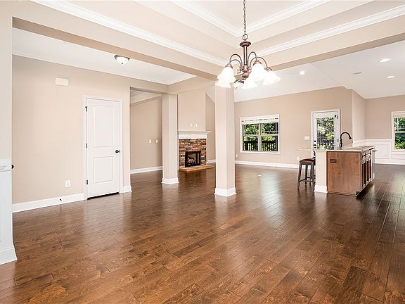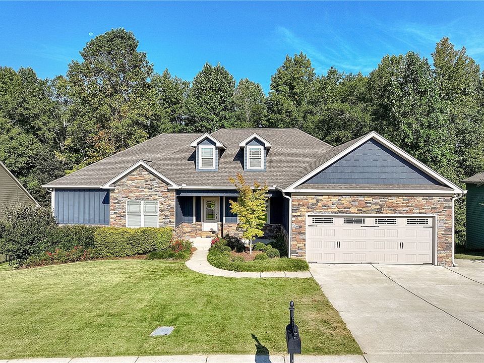 This 6-bedroom, 3-bath home in Cannongate Subdivision offers the perfect mix of everyday comfort, flexible space, and thoughtful upgrades. With 4 bedrooms and 2 baths on the main floor, plus 2 more bedrooms and a full bath in the walk-out basement, it's ideal for multi-generational living, hosting guests, or giving teens their own retreat. The layout is smart—split bedrooms for privacy, an open great room with vaulted ceilings and gas fireplace, and easy access to a covered deck from both the living area and the primary suite. The primary bedroom has trey ceilings, two walk-in closets, a spa-style bath with soaking tub, oversized dual-head shower, and double vanities with generous storage. The kitchen is ready for the home chef, featuring high-end KitchenAid appliances, including a dual-fuel double-oven range, French-door fridge, ultra-quiet dishwasher, and microwave with hood. Under-cabinet lighting, tile backsplash, granite counters, and two eating bars with stools included add to the appeal. The main-level laundry room includes a top-line Maytag washer/dryer set with pedestals. Downstairs, the walk-out basement includes two bedrooms, a full bath, a bonus room, safe-room potential, extensive shelving, an 8’x8’ built-in bookcase, and semi-finished space with drywall and additional outlets—perfect for a workshop or studio. Smart upgrades include Ecobee thermostats, iWave air purifiers, Ring security system, upgraded insulation, attic flooring, irrigation system, and laser-guided garage parking. Outside, enjoy a fenced Zoysia lawn, extra parking pad, and quiet loop street with trees behind. Neighborhood amenities like a pool and playground make this home a standout choice for families, entertainers, or anyone craving more space and style. Whether you want to live fully on the main level or enjoy the whole house, this one is move-in ready and made for easy living. So many upgrades! See full list and floor plan in supplements.
