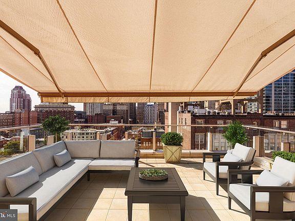 Rarely available, this PENTHOUSE in Washington Square West features an extraordinary 850 sq ft private double TERRACE with retractable awning, offering unmatched outdoor living and breathtaking sunsets over the city with 2 CAR PARKING AND STORAGE! Inside, over 1,700 sq ft of renovated sun-filled space includes floor-to-ceiling windows, an open layout with hardwood floors, recessed lighting, and a sleek gas fireplace. The chef’s kitchen with island seating for 6+ is outfitted with new Thermador appliances, quartzite countertops, and custom cabinetry, while the flexible floor plan provides 3 bedrooms or 2 plus a study/media room. Enjoy recently remodeled bathrooms, seven custom closets plus a private STORAGE room as well as 24-hour concierge service, TWO-CAR valet parking, and remarkably low condo fees in a financially stable building that hasn’t had an assessment in over 14 years. Steps from Jefferson Hospital and minutes to both Rittenhouse and Washington Squares, this is Center City living at its finest.