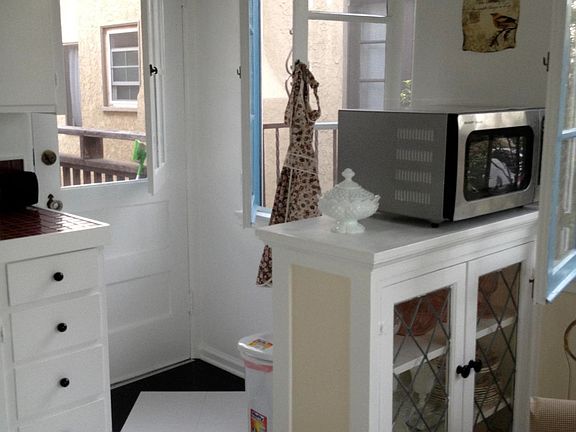 Dining room, separate kitchen, deco bathroom, hardwood floors, French windows, beamed ceilings, antique chandeliers, Murphy bed, enter a gorgeous courtyard from the 1920's on a cul-de-sac street, tons of parking, private neighborhood. Exotic palm trees, fountain, orchids, beautiful flowers. Spanish tile roof, mosaic arched entry, hand-carved wood. Washer/dryer, share private patio. Real home-type atmosphere. Very rare opportunity to live in a very desirable neighborhood with old-world charm. 818.445.4521 24-Month Lease