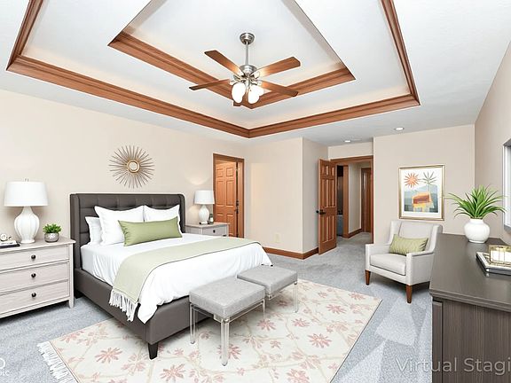Welcome to this beautifully crafted custom home! From the front door you're greeted by a dramatic two-story entry. An expansive, open-concept main level with gleaming hardwood floors offers includes a spacious great room with a cozy fireplace. The kitchen boasts a breakfast bar with seating and a pantry, and flows seamlessly into the sun-filled dining area. Upstairs, you'll find four generous bedrooms plus a versatile bonus room-ideal as a media space, playroom, or second family room. The conveniently located second-floor laundry adds everyday ease. The primary suite features a tray ceiling with accent lighting, a custom-designed walk-in closet, and a luxurious bath with a large ceramic-tile walk-in shower. All secondary bedrooms also offer custom closet designs. Additional highlights include a dual HVAC system for efficient zoned comfort, an irrigation system to keep the lawn pristine, and a three-car garage with ample storage. Located just minutes from shopping, restaurants, parks and more!