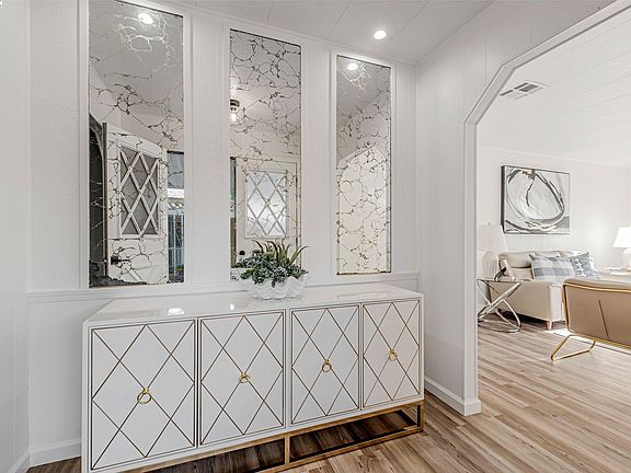 Sunnyvale Gem: Modern Living at Willow Ranch Welcome to Willow Ranch, a premier 55+ community in the heart of Sunnyvale. This stunning, fully renovated home offers modern luxury and convenience, feeling more like a chic single-family residence. Step inside the generous, open-concept floor plan, where every detail has been thoughtfully updated. The pristine modern aesthetic features sophisticated black light fixtures and hardware. The home is completely turn-key with new paint (in/out), new high-quality LVP flooring, and new carpet on exterior porches. A versatile enclosed porch off the living room offers highly desirable extra living space—perfect for a sunroom, office, or quiet retreat. The gourmet kitchen boasts all-new cabinetry, white quartz countertops, and a peninsula island. Stainless steel appliances are included, a large walk-in pantry. Great display and storage space is provided by a built-in glass-fronted cabinet in the dining area. The spacious primary suite features a walk-in closet and a spa-like ensuite bath with dual sinks and gorgeous vanity. Located conveniently near shopping, restaurants, freeways 101 & 237. The established community provides an active, social lifestyle with amenities: clubhouse, pool, and spa. Don't miss this stylish, fully updated home!
