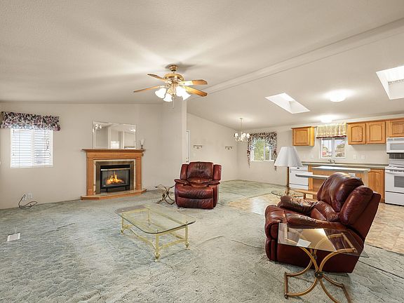 Welcome to this beautifully maintained 2001 manufactured home offering 1,800 sq. ft. of single-level living in the desirable Westwood Village community. Inside, you'll find a bright, open floor plan with skylights, and a large living area perfect for relaxing or entertaining. The kitchen features ample cabinet space, an island with breakfast seating, and all appliances included. A cozy fireplace adds warmth and charm to the main gathering space.