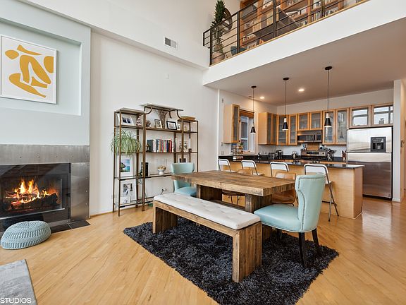 Ready for move-in ASAP! Introducing your urban sanctuary in Wicker Park! This sought-after 3-bed, 2.5-bath duplex penthouse offers 18-foot ceilings, stunning city views, and private decks. Flooded with natural light, the open-concept layout features a dramatic living room, stainless kitchen, and lofted bonus space. The primary suite boasts a private deck and spa-caliber bathroom. Hardwood floors, side-by-side washer/dryer, ample storage, and garage parking complete this package. Just steps from Division Street and transit options. Don't miss out on this urban oasis!