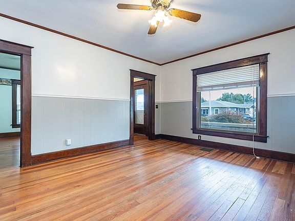 This is it, an affordable home that has been remodeled and move-in ready. When you walk in, you'll notice a sperate entrance area, which will be great in the winter, no cold air coming into the house. The hardwood floors and wood trim are original to this sweet 3-bedroom, 1 bath, 1457 sq. ft. home that also has a gas fireplace. The home was remodeled in 2023; with the kitchen updates including, new stainless-steel appliances, paint, and vinyl plank flooring. The bathroom is tastefully remodeled with a new vanity, tiled walk-in shower with glass door, and toilet. New vinyl siding and double-paned windows, the detached oversized two car garage was built in 2023 and boasts 744 sq. ft. (31x24); plenty of room for extra projects. The landscape in the front yard enhances the look and privacy of the home while the back yard promotes a large concrete patio, a large Oak tree for shade, and a 10x8 storage shed. It's a quite and private area to relax. The entire yard is fenced in with black fencing. The basement is dry and has a new washer and dryer included. There are rooms for storage and an outside entrance (cellar door access) for storms.