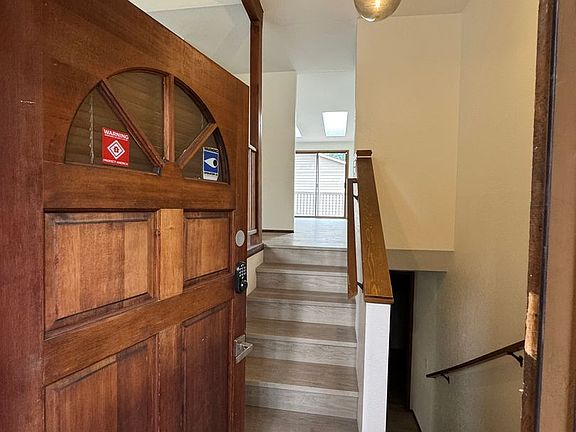 Skylights in kitchenGreenbelt across streetSeparate dining areaVaulted ceilingsStainless steel appliancesNew paint