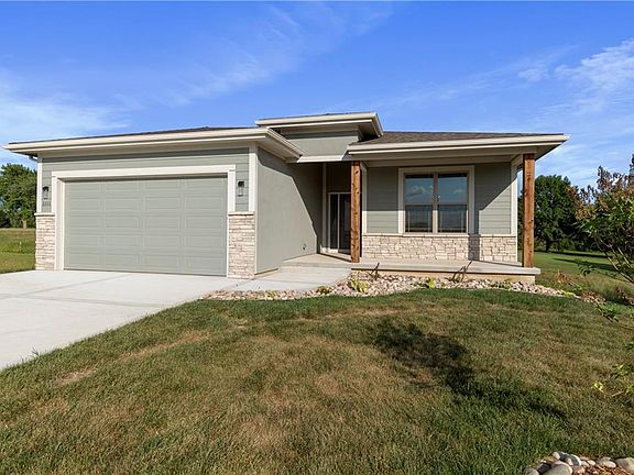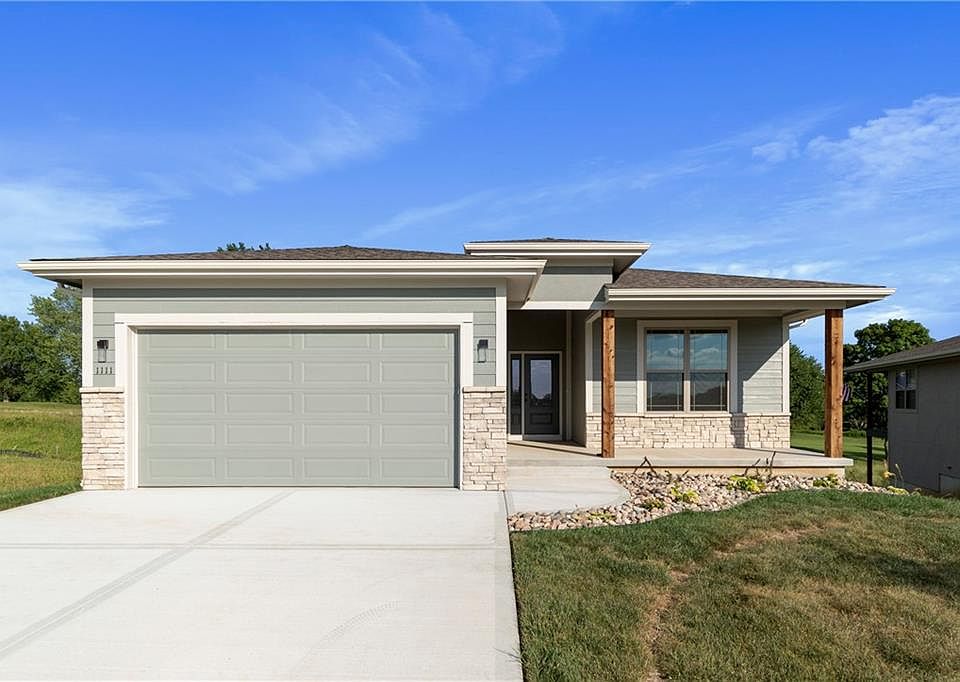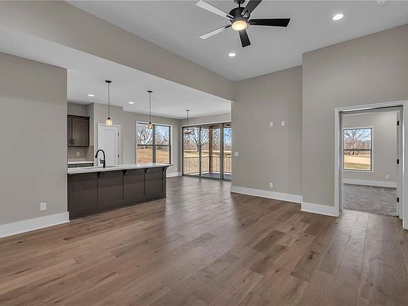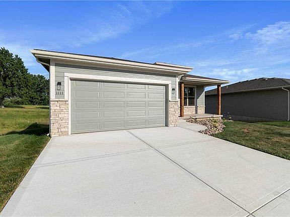 Call agent for details on our monthly builder incentive! Welcome to Golf Hill Estates, where serenity meets convenience at the edge of Excelsior Springs’ 18-hole championship course. This gorgeous new construction home impresses from the start with upgraded curb appeal, rock landscaping, and a timeless stucco-and-stone exterior. Inside, soaring 11-foot ceilings and expansive golf course views set the stage for open, bright living. Engineered hardwood floors flow into a spacious living area with upgraded trim, seamlessly connected to a designer kitchen featuring quartz countertops, custom cabinetry, and a walk-in pantry. The primary suite is a true retreat with a tiered ceiling, private golf course views, a barn door entry to the ensuite, double vanity, tiled shower with bench, and a walk-in closet. Additional conveniences include an oversized garage with easy access to a well-placed laundry room, making day-to-day living simple and efficient. Step outside to the 13-foot deck and soak in views of the manicured fairways. The unfinished walkout basement offers endless possibilities—extra storage, future living space, or even your own golf simulator. With maintenance-free living, including lawn care and snow removal, you’ll have more time to enjoy the lifestyle you deserve.