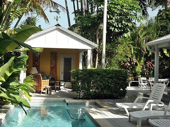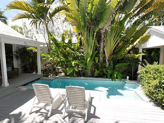 Great home for indoor/outdoor living with large living area, with vaulted ceilings & 8 ft tall French doors to bring in maximum light. The master bedroom and one other are in the original Conch shotgun part of the house, each with it's own bath; the master with walk-in closet. The kitchen overlooks the pool and deck areas. A half bath and laundry room are also in the main structure. The pool cottage has a small sitting area, third bedroom & bath. This home has been used as a monthly vacation rental for several years. Furnishings are negotiable.