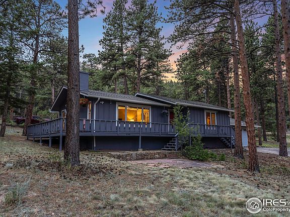 Located in desirable Hondius Heights, this single-level ranch rests on the north shoulder of Prospect Mountain. Peaceful and private, yet just minutes from downtown Estes Park and Rocky Mountain National Park. The 2-bedroom layout offers a vaulted great room with stone-clad gas fireplace, remodeled spa-like bath, and large windows that fill the home with light. Updates in 2024-2025 include new stainless appliances, new kitchen sink, faucet, & disposal, fully remodeled bath, upgraded fireplace, new washer/dryer, and new garage doors and openers. Roof, windows, and furnace are in good condition. Practical touches include a 2-car garage and spacious bedrooms with walk-in closets. The 0.74-acre lot allows RV parking and space for a future workshop. Outdoor living shines with two decks among mature pines, mountain views, and abundant wildlife. Offered furnished, including TV, wall decor, and most furnishings (exclusions list available).