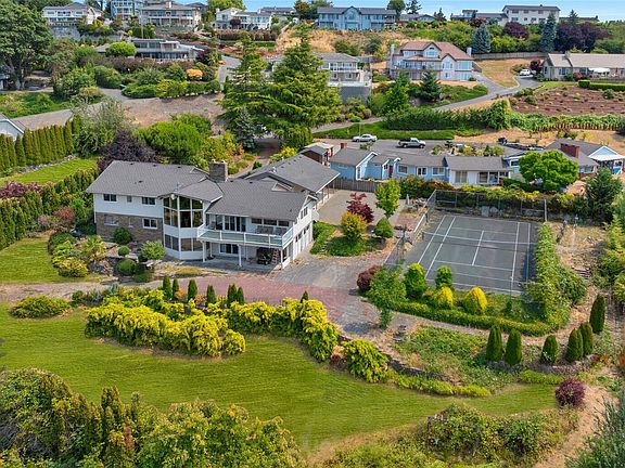 Set on a gated private street of only five residences, this 1.46-acre estate offers a peaceful sanctuary close to town. The ~3,950 sq ft main home features a harmonious layout with expansive areas for entertaining, four bedrooms tucked away, and views of the Sound. Enhancing the grounds are a sport court, circular driveway, and generous space for bespoke landscaping or gardening. The presidential roof (2005) and oak hardwoods (2024) add timeless appeal. Rounding out the estate is a separate ~1330 sq ft 1BR+.75BA guest home complete with a cozy loft and its own parking pad, offering versatility or rental income. Cherished for over 2 decades, this home's potential stands poised to fulfill its next steward's vision of their forever home.