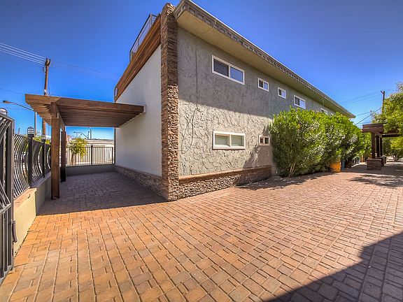 This first-floor end unit features granite countertops, tile flooring, and a remodeled bathroom. Enjoy the convenience of assigned parking right in front. With only one neighboring unit, this home offers added privacy. Includes ceiling fans and window coverings. Ideally situated near the Arts District and Downtown Las Vegas