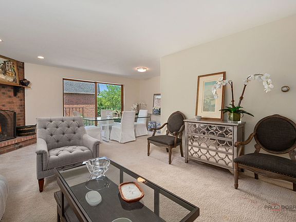 Lovely corner unit townhome with over 2,100 sq. ft. of finished living space overlooking a beautiful pond! This light-filled unit has 3 bedrooms, 2.1 bathrooms, a separate office, in-unit laundry/mudroom, a finished, walk-out lower level to a private, fenced patio, and an attached 2-car garage. The spacious living room and dining room share a corner brick fireplace and access to a private balcony. The second floor includes 3 spacious Bedrooms with large closets; 2 overlook the pond. The Primary Suite has a large walk-in closet and bathroom with double sink. Close to schools, shopping, train, restaurants, and parks. Recently painted. New water heater and lighting. Easy access to highway. Enjoy maintenance-free living in one of the North Shore's premier communities. Make it your own or move right in and enjoy!